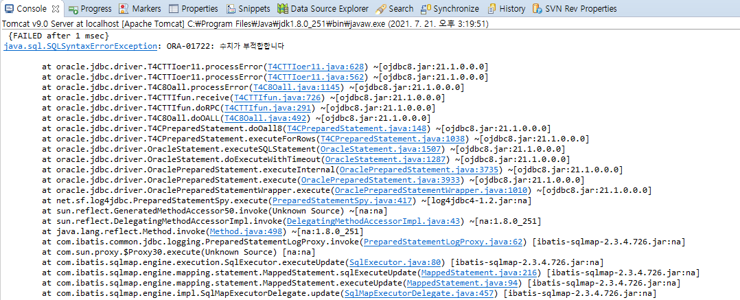 java.sql.SQLSyntaxErrorException: ORA-01722: 수치가 부적합합니다