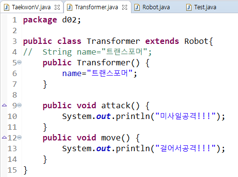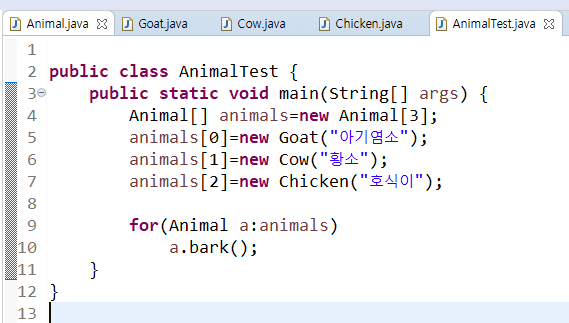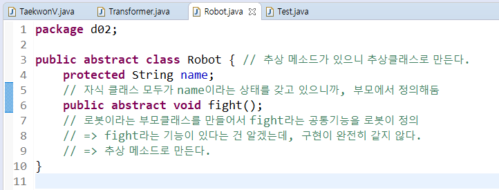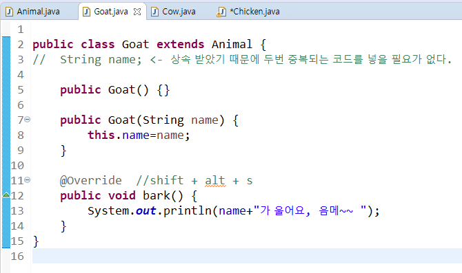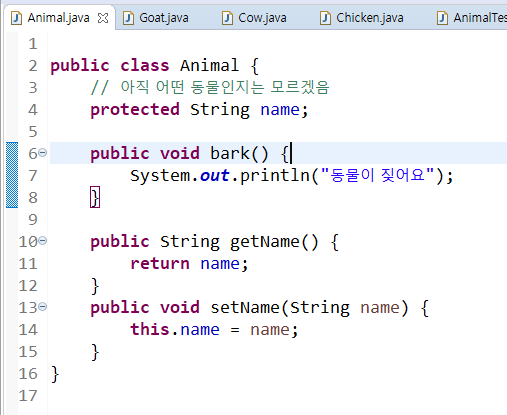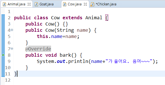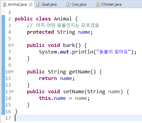 부모클래스일 수록 개념적이고 추상적으로 메소를 구현하게 된다.
