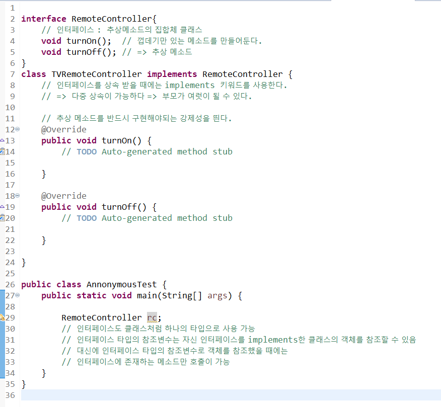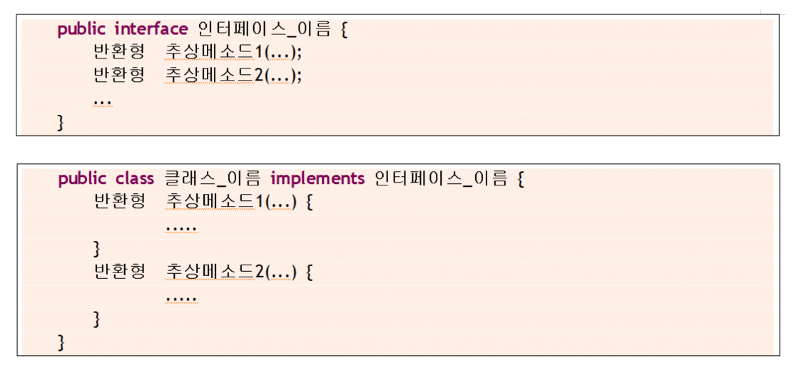 => 인터페이스를 상속 받을 때 extends -> implements