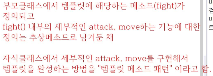 부모클래스에서 템플릿에 해당하는 메소드가 정의되고,