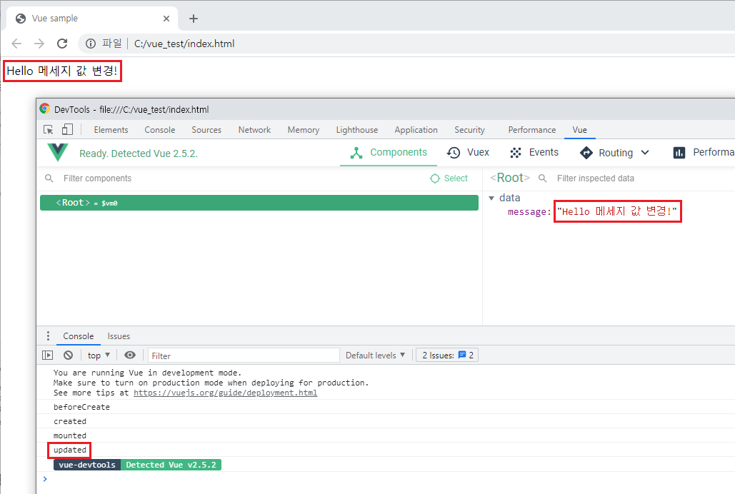 this.message = "Hello 메세지 값 변경!"; //값을 변경