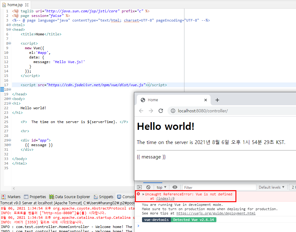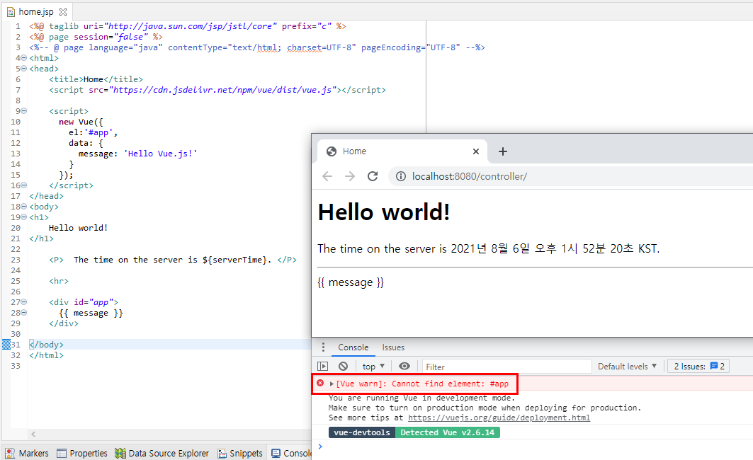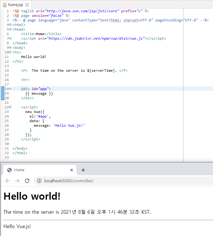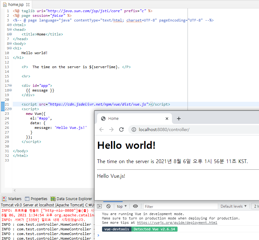 먼저 Spring 개발 환경을 세팅하고, jsp 파일에 Vue.js 스크립트를 추가하면 사용할 수 있다.