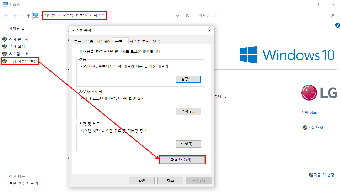환경변수를 설정한다.
