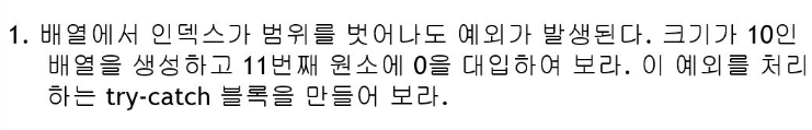 7번 라인에서 예외가 발생 => 8번 라인 catch문을 실행 => 멈추지 않고 이어서 나머지 코드들 실행