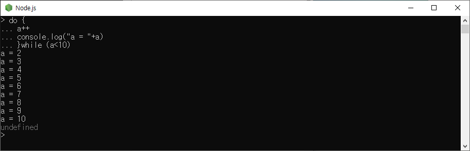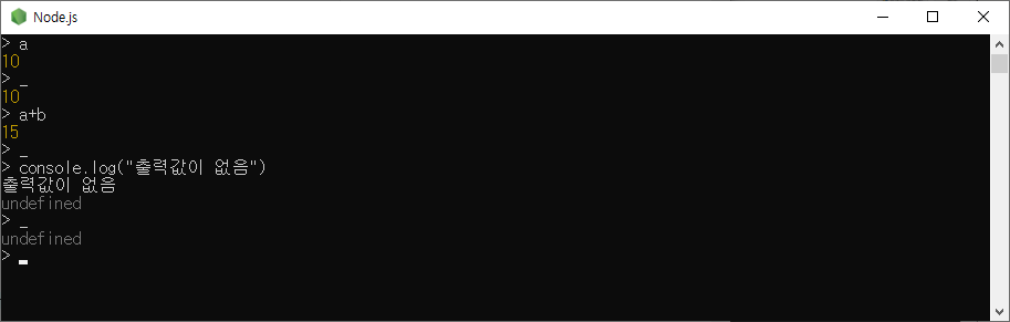 (undefined가 출력되도 오류는 아니며, 출력할 결과값이 없어 undefined가 나오는 것.)
