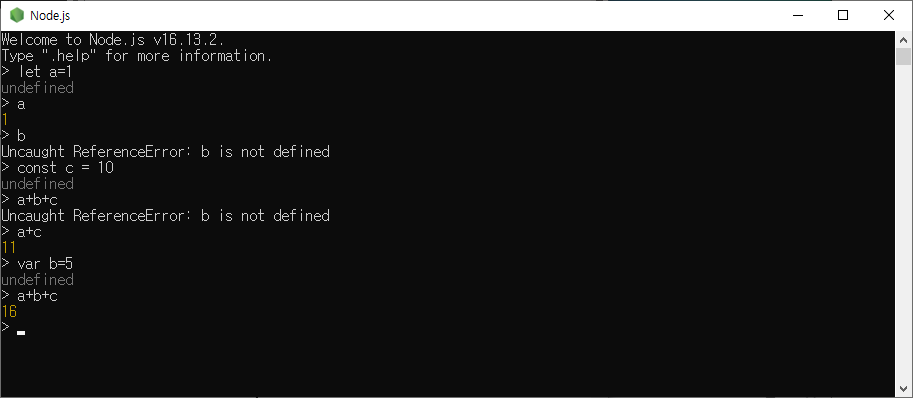 > a+b+c // Uncaught ReferenceError: b is not defined - 오류나는게 정상.