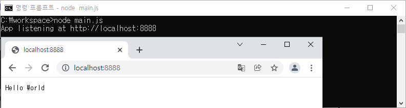 그리고 위와 똑같은 방식으로 cmd 창에서 main.js 파일을 실행한다.