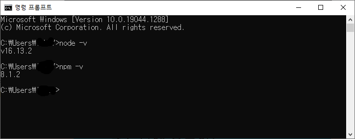 cmd 실행은 윈도우 버튼 + S => cmd 입력 후 엔터 or 윈도우 버튼 + R => cmd 입력 후 엔터