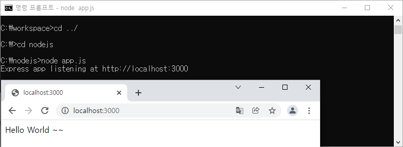 (* express는 간단하게 서버를 구현할 때 사용하는 Node.js 용 웹 프레임워크 )