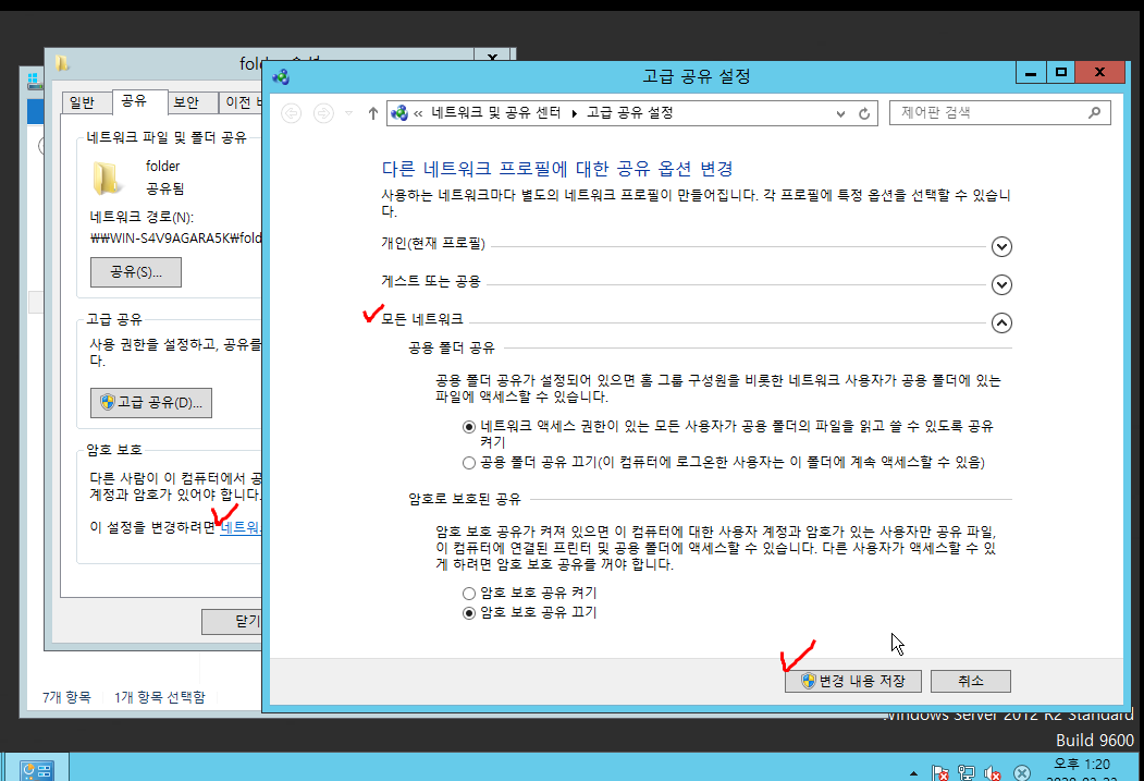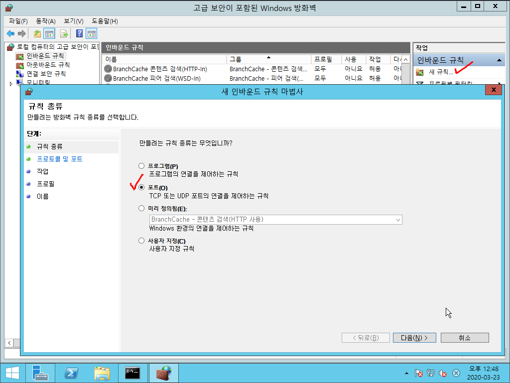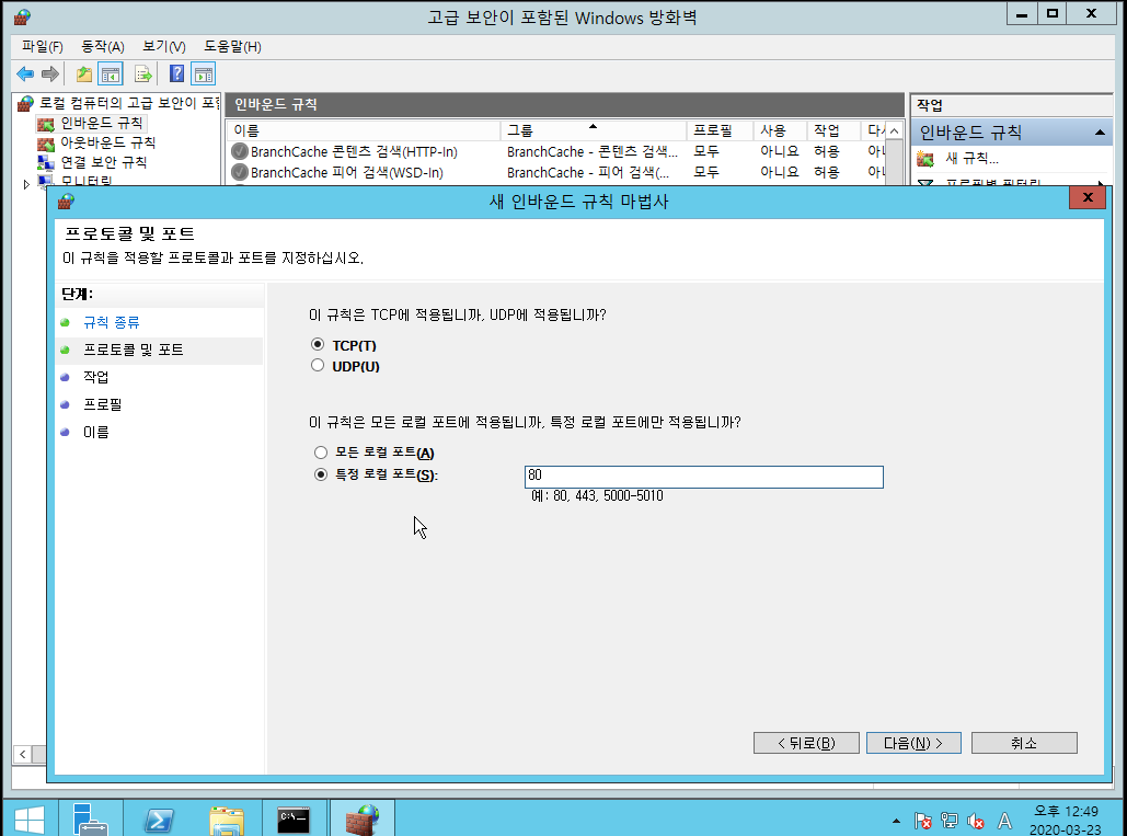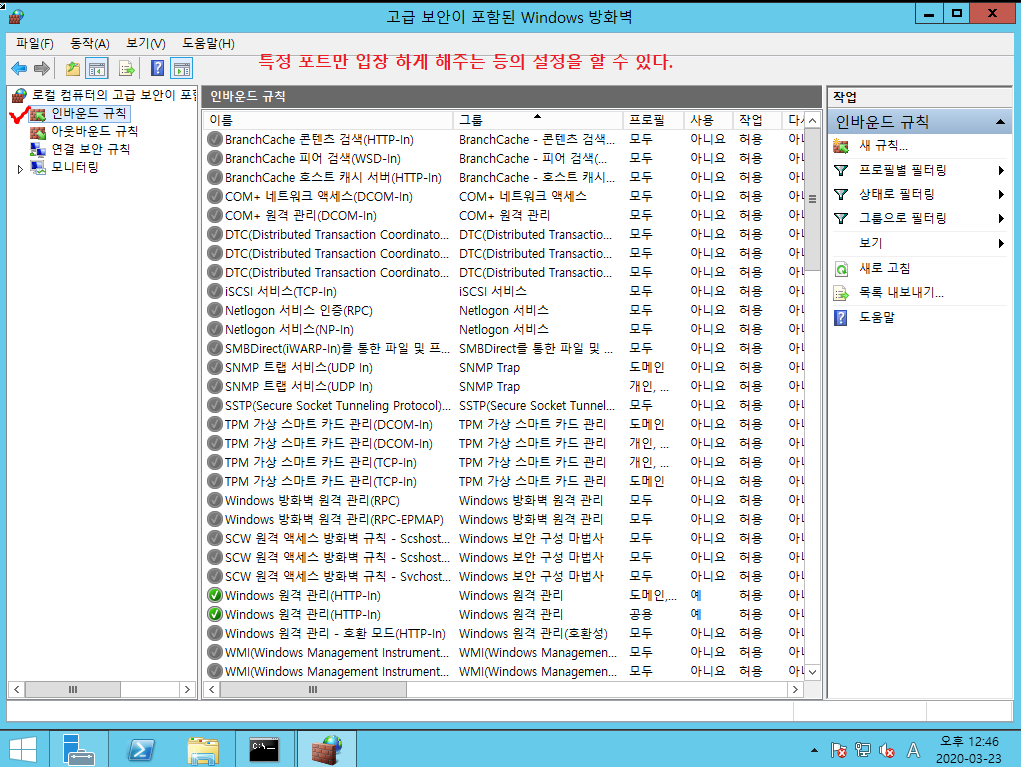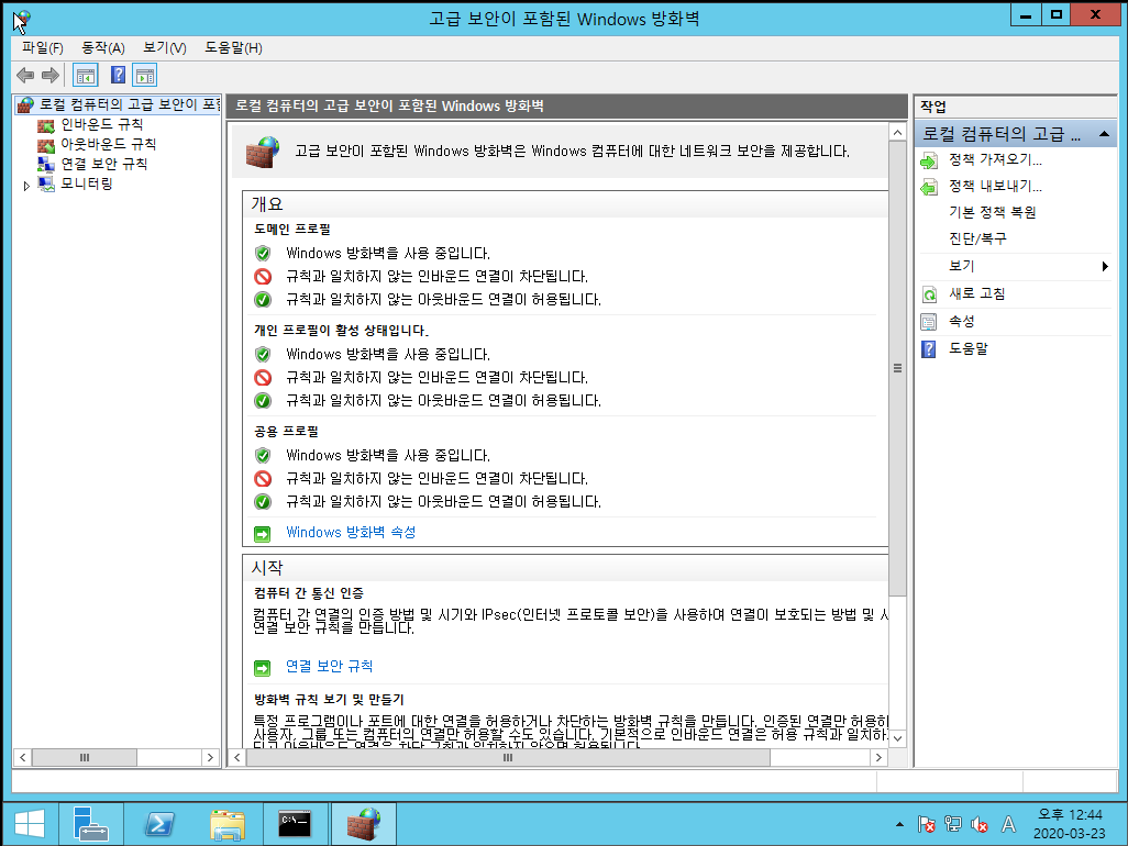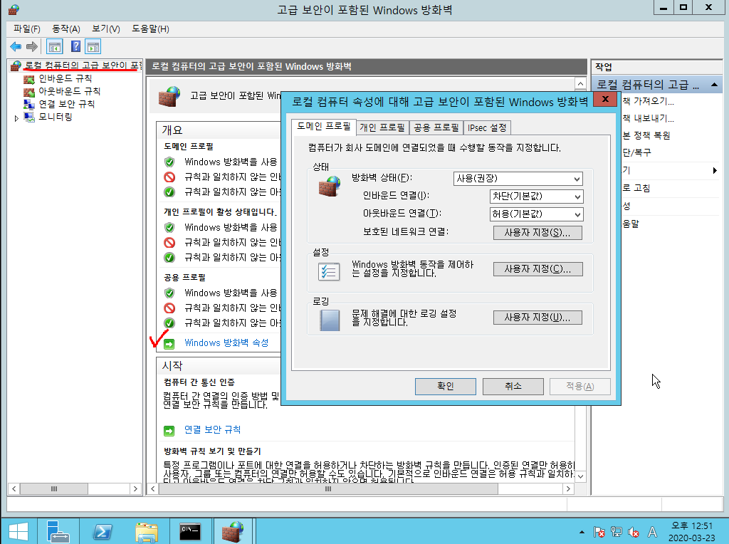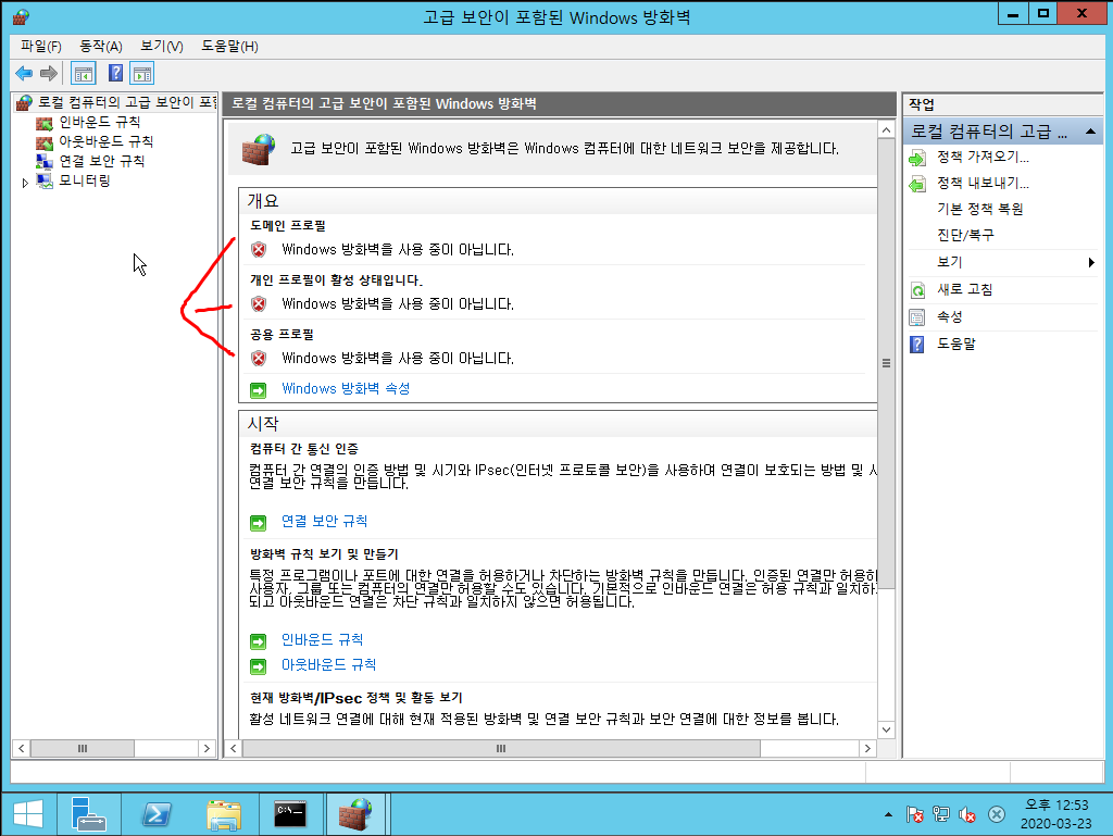 프로필들의 방화벽 상태를 전부 사용 안함으로 설정한다.