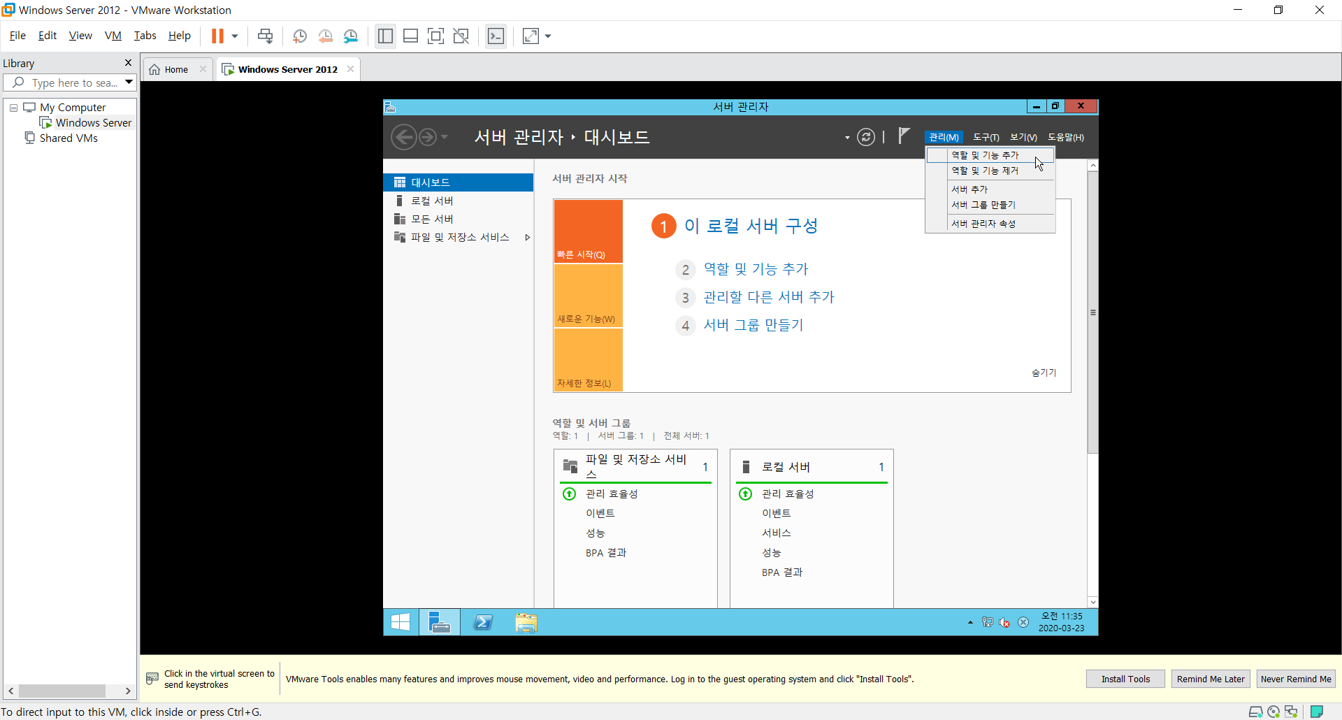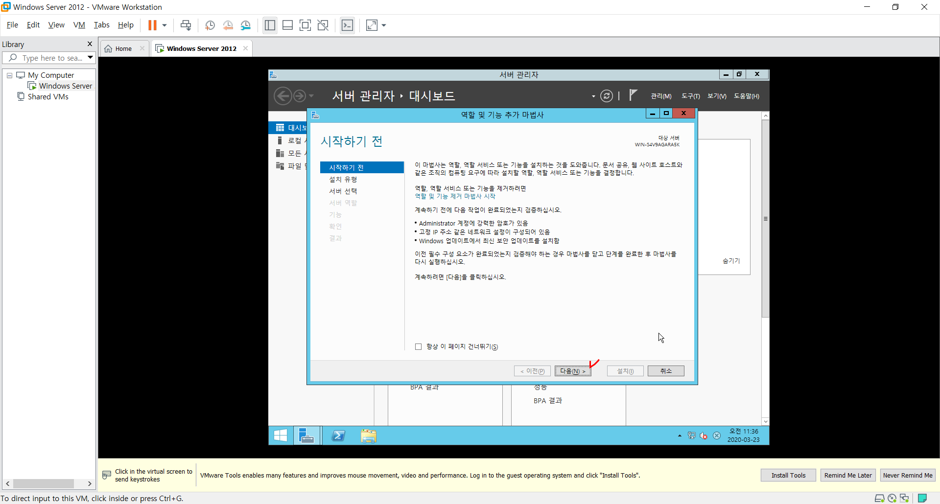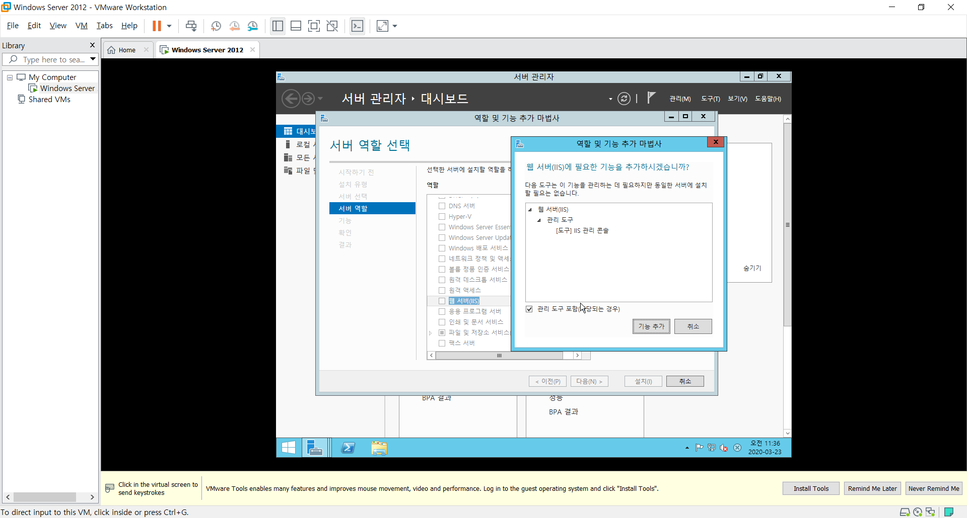 다음을 계속 눌러주다 서버 역할 ( 웹 서버 ) 만 설정해준다.