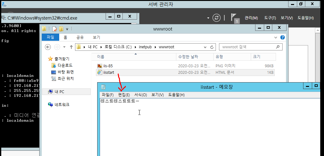 해당 아이피 주소를 치면 윈도우 서버가 나온다.