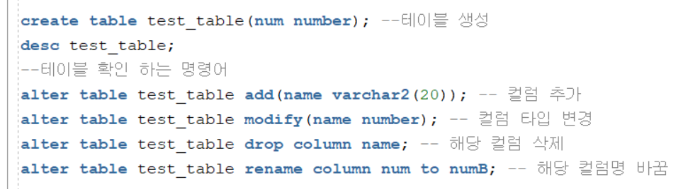 alter => 테이블 안 컬럼 수정