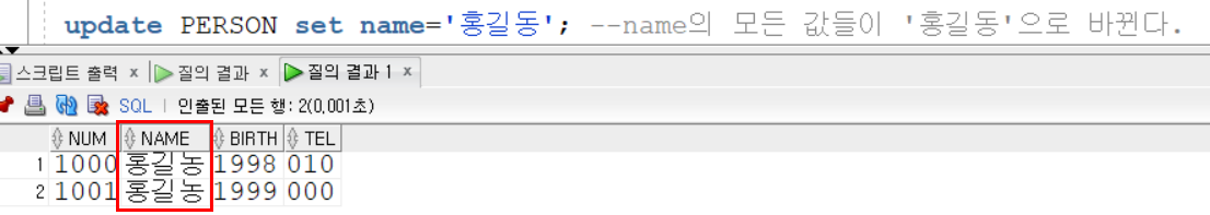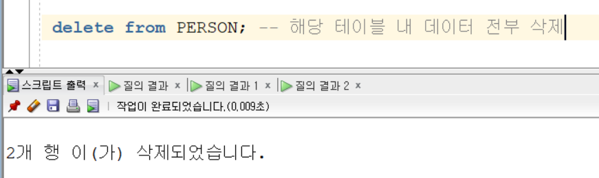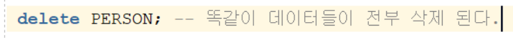 delete from 테이블명 => 해당 테이블 내 데이터 전부 삭제