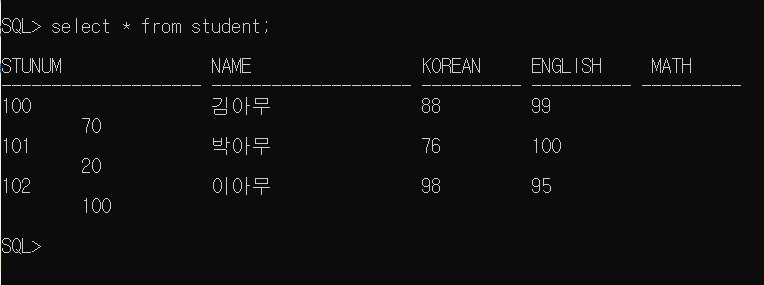 select * from 테이블명 => 테이블안 데이터 전부를 선택