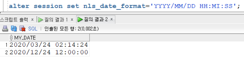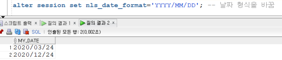 alter session set nls_date_format='YYYY/MM/DD'; =>날짜 형식 바꿈
