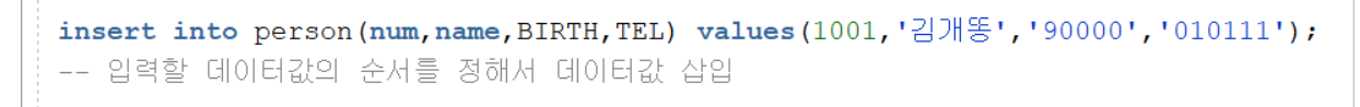 insert into 테이블명 values(); => 삽입