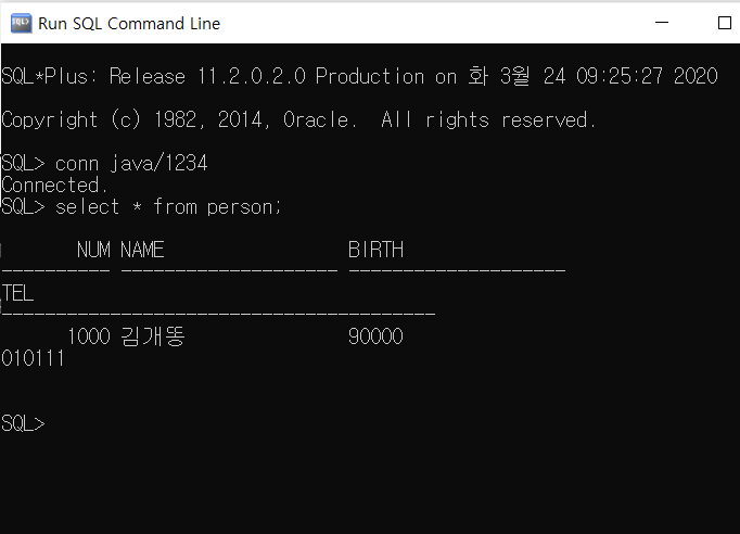 Run SQL Command에서도 값이 저장이 된걸 확인할 수 있다.