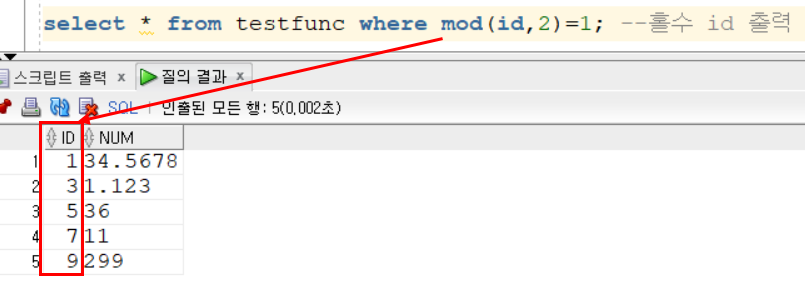 2. id 1 ~ 10 사이에 있는 홀수 id 값들을 모두 출력하시오.