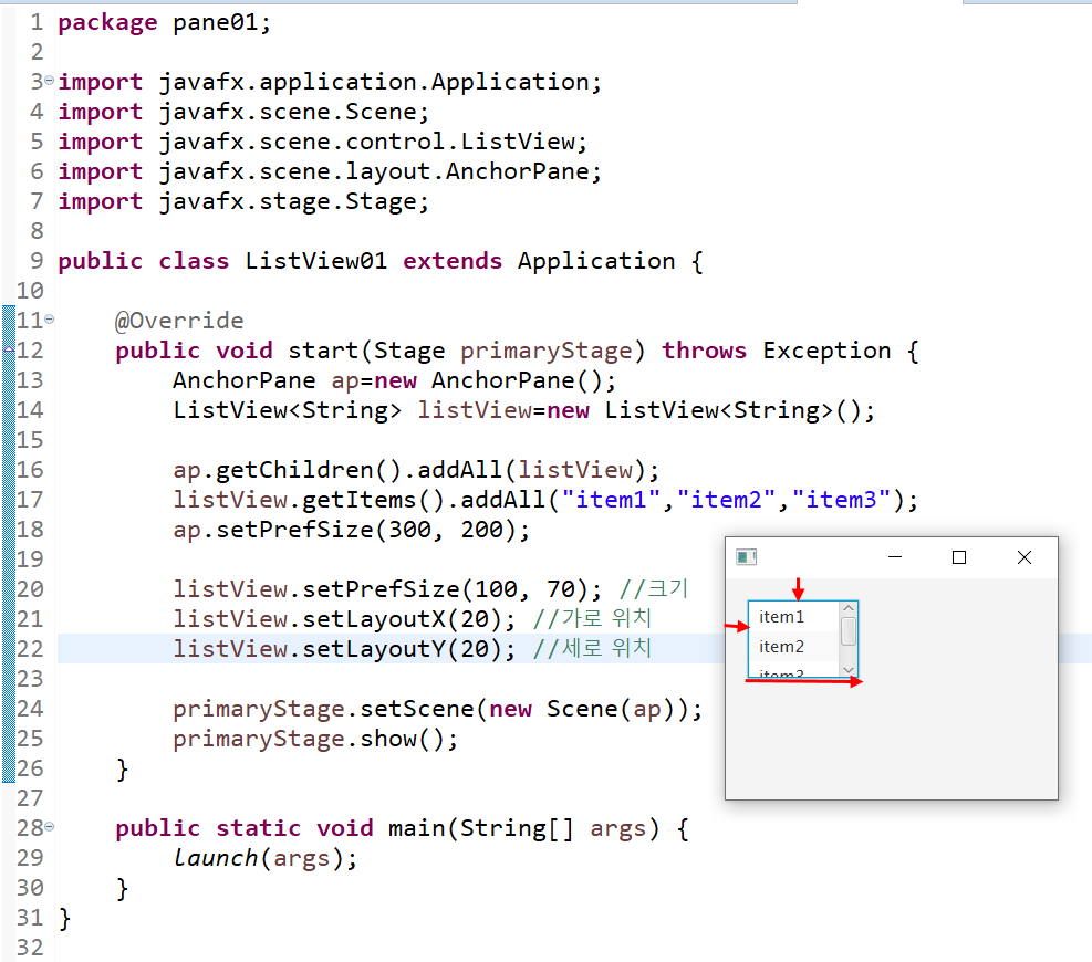 Pane을 원하는 (가로,세로) 위치에 설정할 수 있다.
