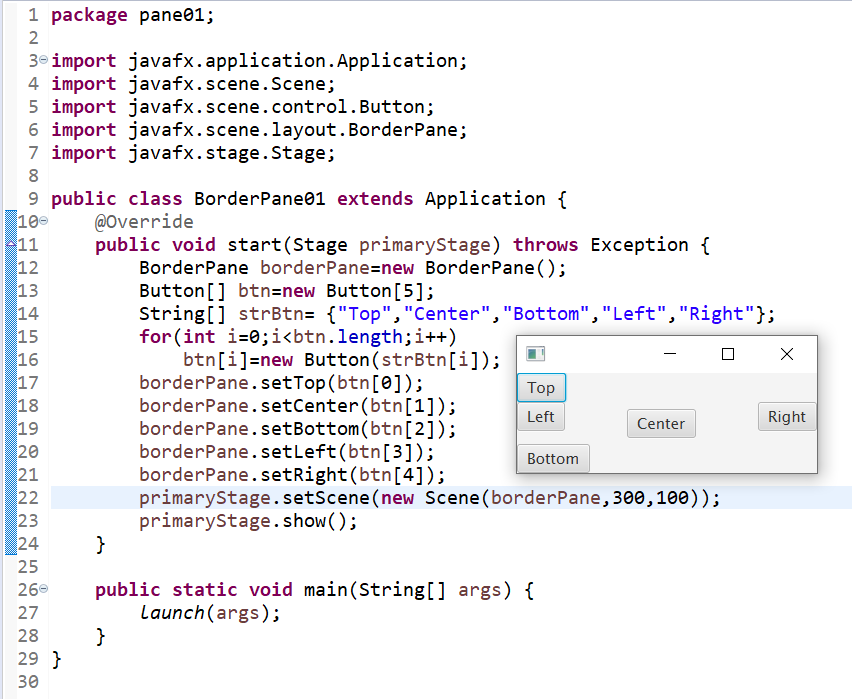 Pane을 위, 아래, 중간, 왼쪽, 오른쪽 중 원하는 위치에 설정할 수 있다.