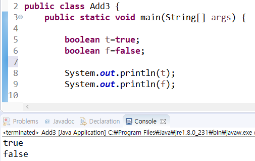 결과값이 boolean 타입(true, false)으로 출력된다.