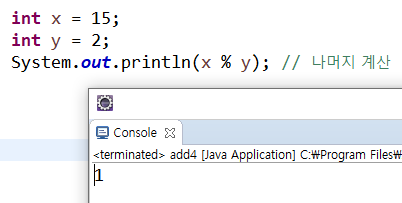 %는 나머지를 계산하는 연산자로, 홀수 짝수를 구별하는등에 응용할 수 있다.
