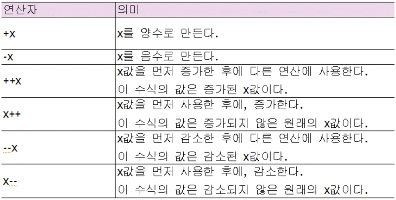 2) 단항 연산자