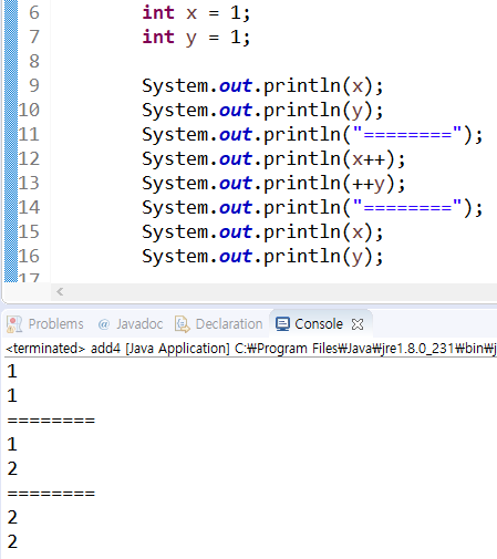 12번 라인 : 메모리에 저장된 값을 먼저 사용(출력)을 하고, 메모리에 저장된 값을 +1을 한다.