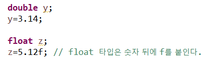 2) 실수형 double형, float형