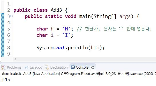 H=072, I=073 => 72+73=145 => 145 출력