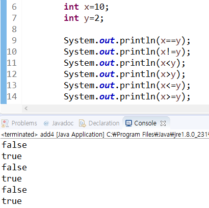 4) 관계 연산자 (부등식)