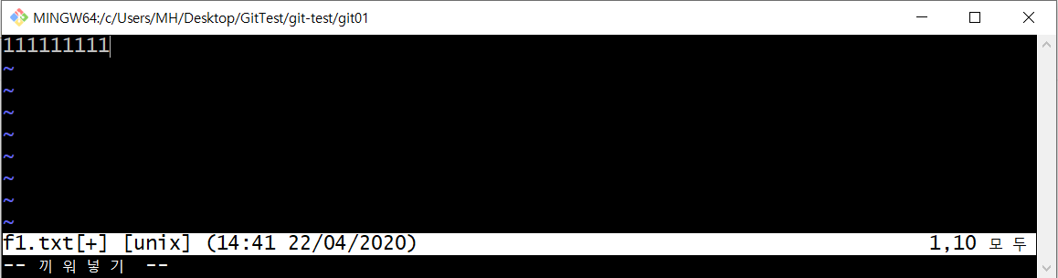 esc => 하단 클릭 shift+; => wq 저장하고 종료
