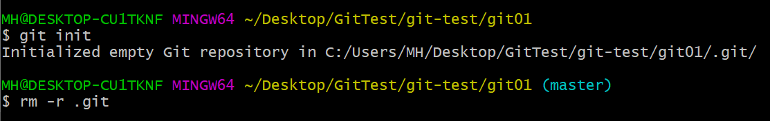 rm -r .git => .git 숨김 폴더 삭제