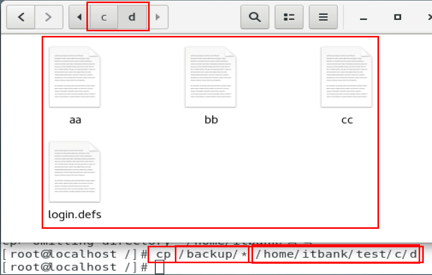 itbank]# cp /backup/aa /home/itbank/test/c/d