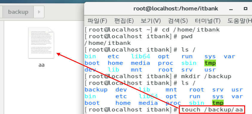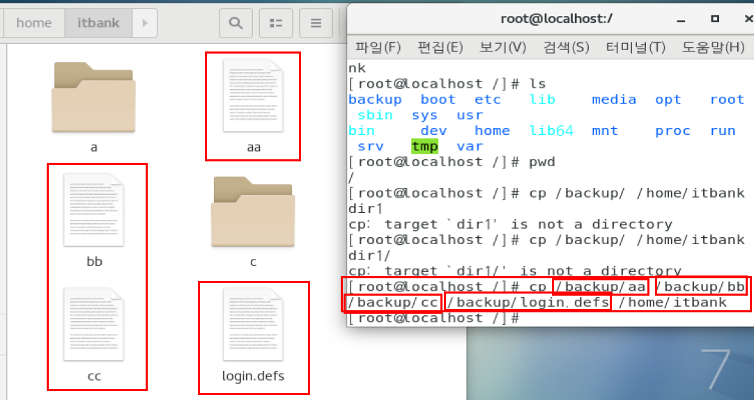 1. /backup/ 안에 있는 파일들을 /home/itbank(사용자)/디렉토리로 복사