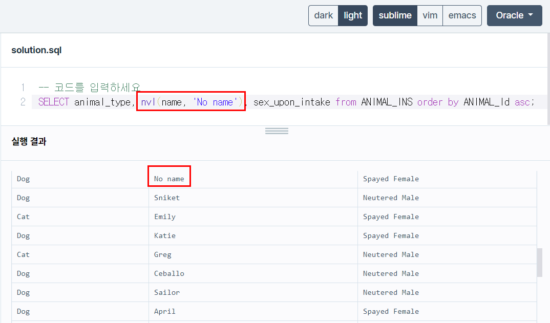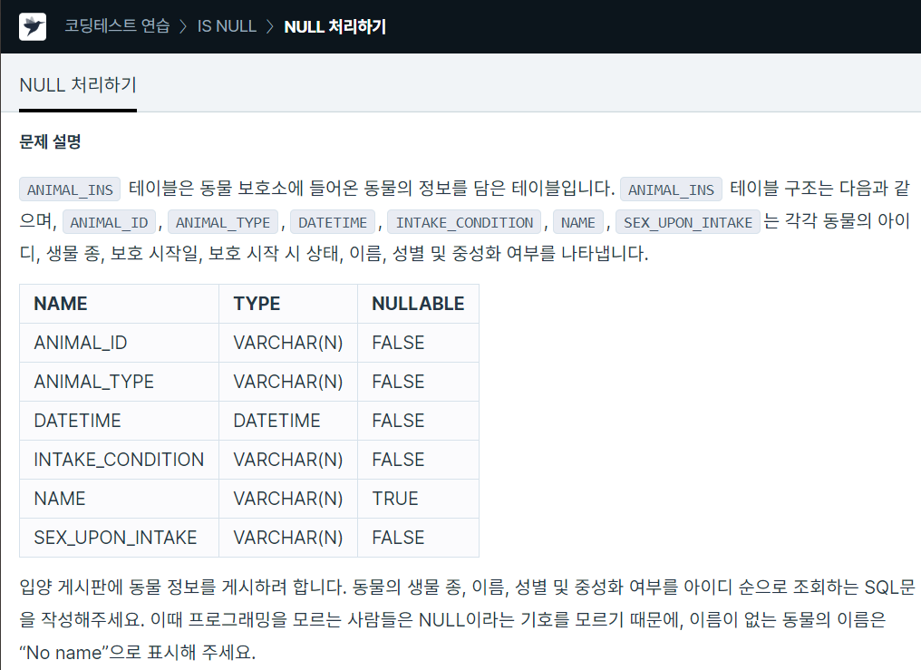 | Level 2 > String, Date > 이름에 el이 들어가는 동물 찾기 (0) | 2020.05.12 |