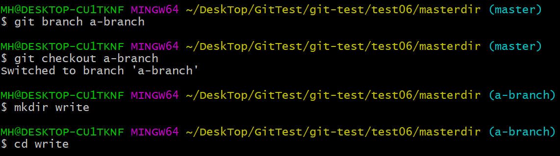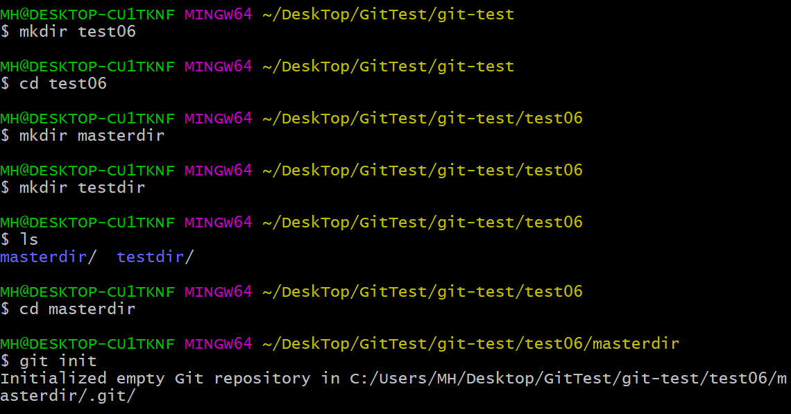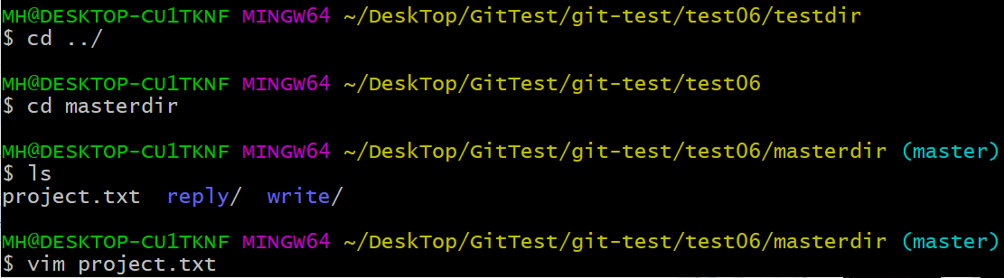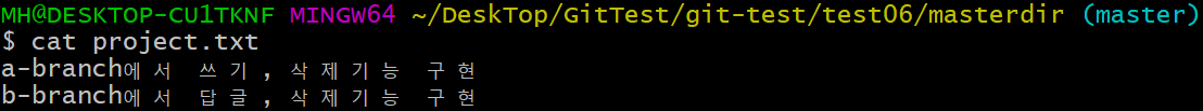 masterdir 디렉터리를 깃으로 관리하고 project.txt파일 생성 후