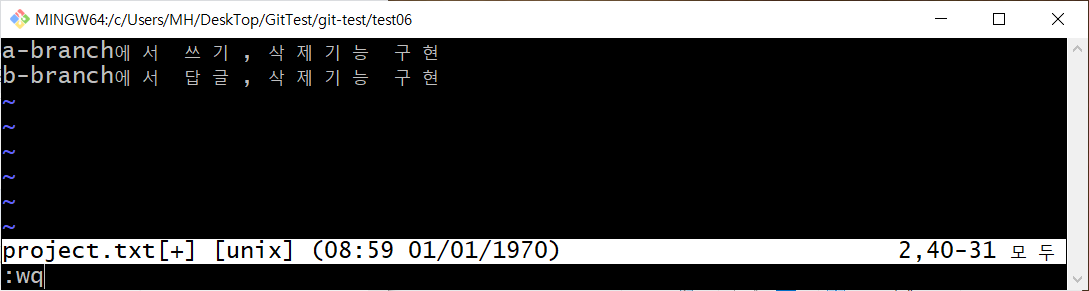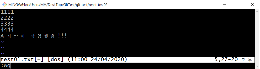 vim test01.txt => 필요없는 내용을 지우고 저장