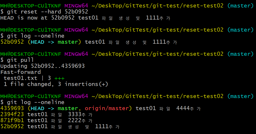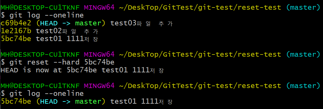--hard는 로그까지 없어지니 되도록이면 사용X