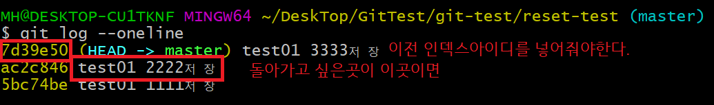 git hub에서 인덱스아이디를 복사해서 reset을 할 수 있음