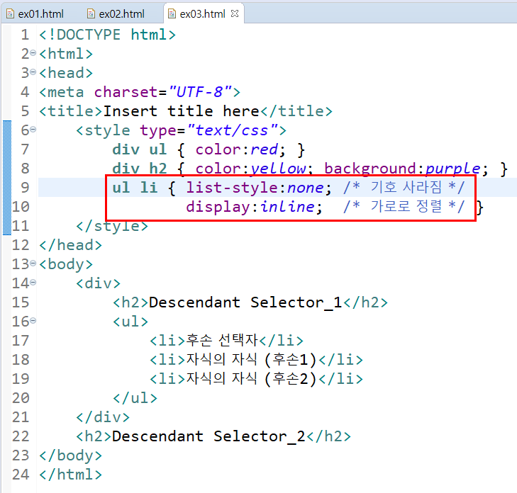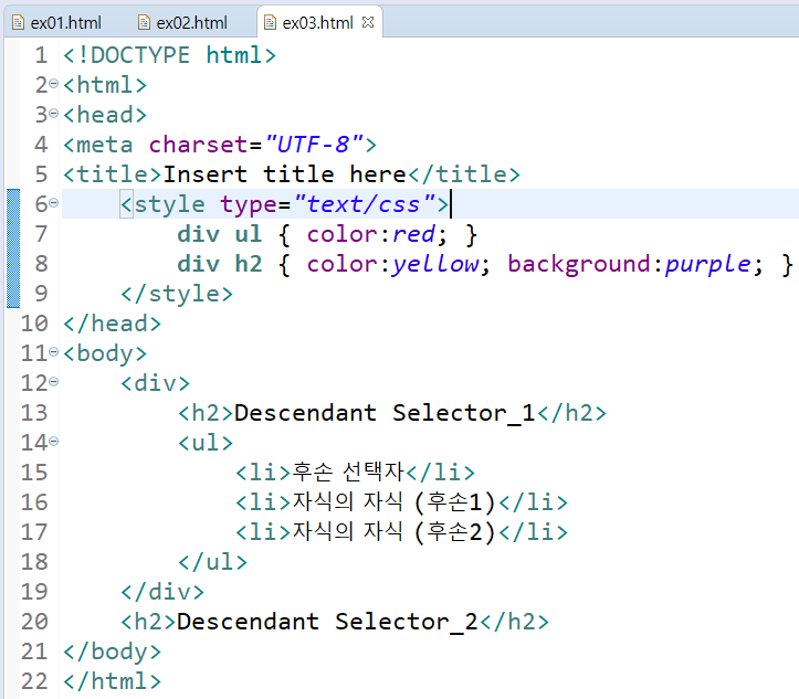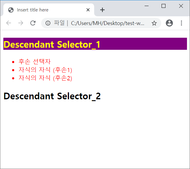 하위 선택자 = 후손 선택자 = 자손 선택자
