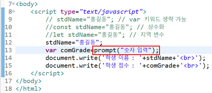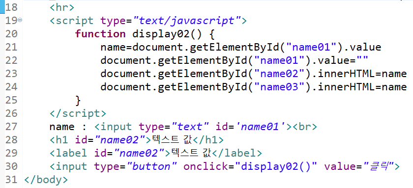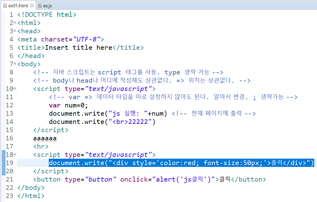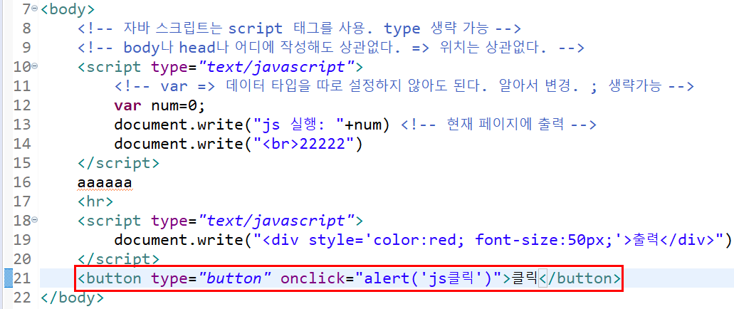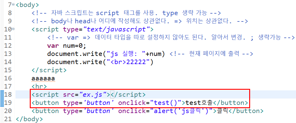 => html 내에서 스크립트를 불러주고, 함수를 호출함
