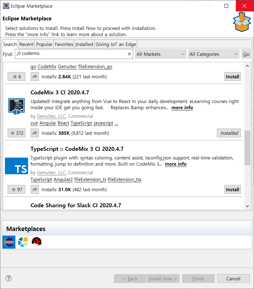 자동 완성 => 이클립스 마켓플레이스 코드믹스 검색
