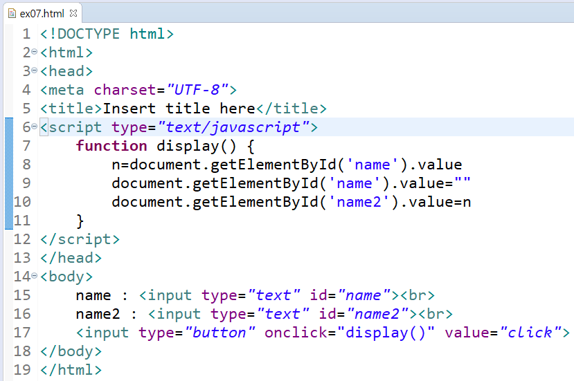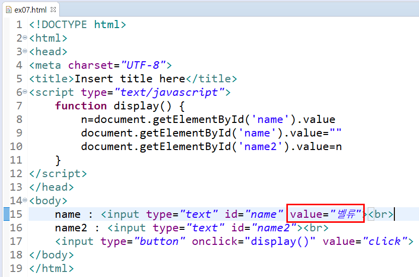 getElementById('아이디명').value => 값을 가져오거나 값을 지정할 수 있다