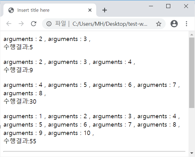=> 함수에 전달된 인수에 해당하는 Array 형태의 객체