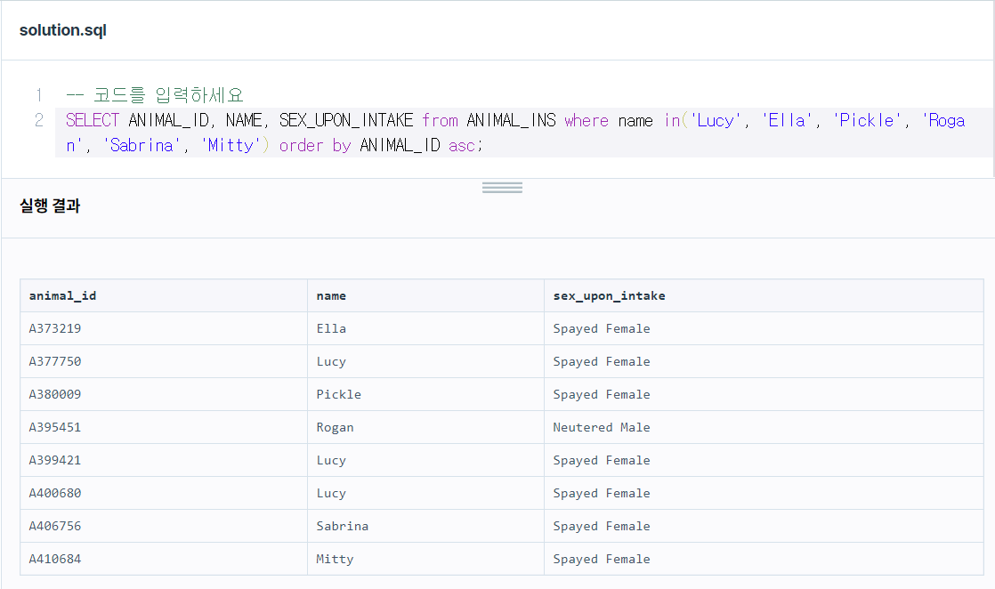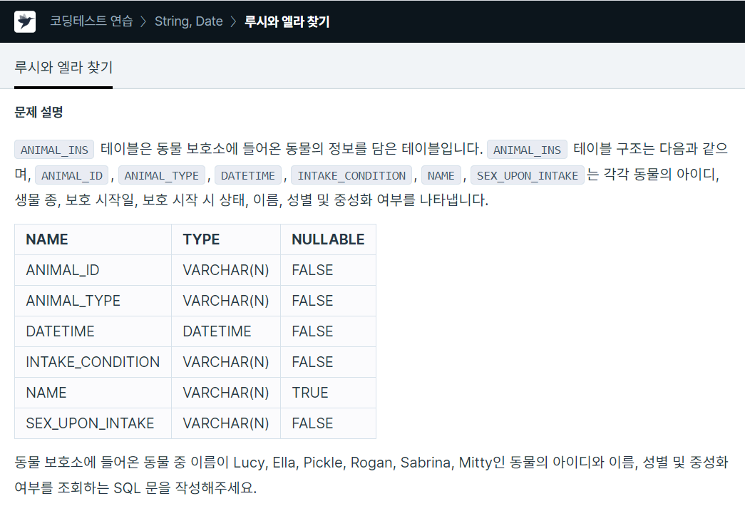 | Level 2 > String, Date > 이름에 el이 들어가는 동물 찾기 (0) | 2020.05.12 |