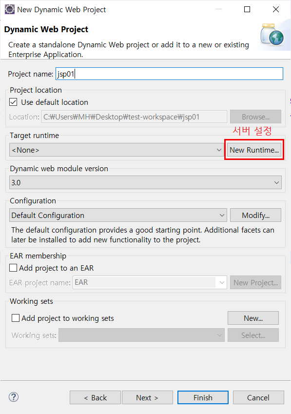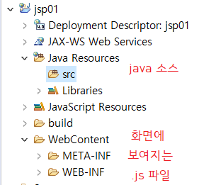 WebContent => 화면에 보여지는 파일들(js 파일 등)을 이곳에 생성