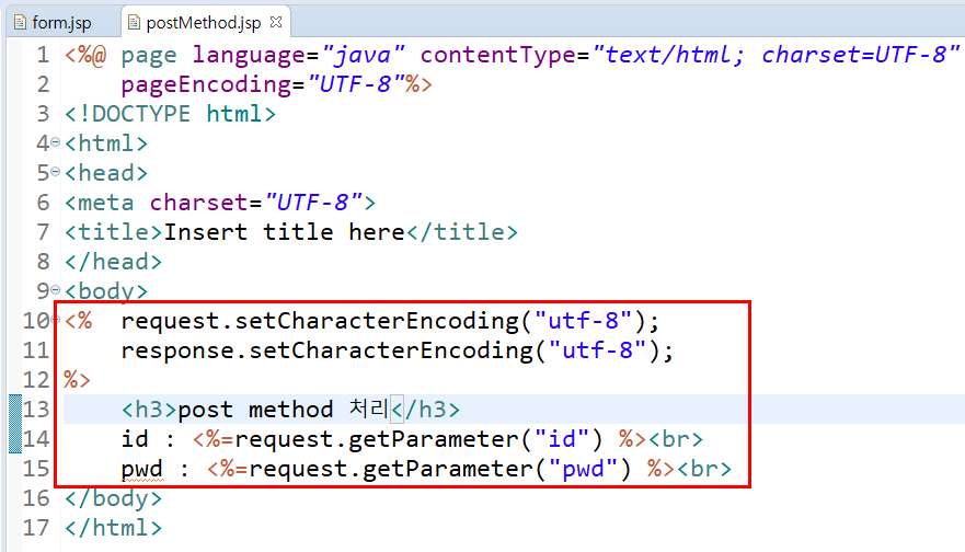 setCharacterEncoding => 받아온 데이터의 인코딩을 맞춰줌