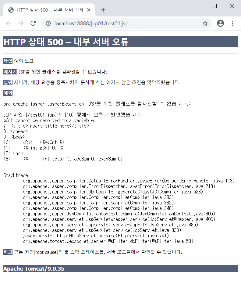 => 브라우저에서는 JSP언어를 확인 할 수 없음